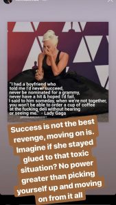 She asked, what would have become of Lady Gaga if she didn’t move on from that toxic relationship she found herself. MAKINWA emphasized that there’s no power greater than picking yourself up and moving on from it all.